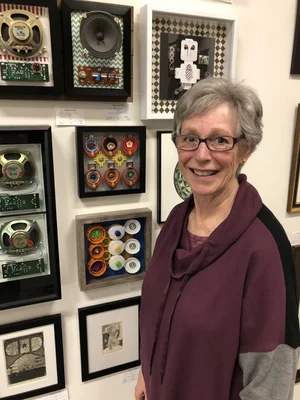 For my assemblages, or collages, I collect any objects that I find interesting or attractive, even if I have no idea how they will be used. Some things are attractive because of their shapes or colors or textures. Some everyday objects are works of art in themselves, such as old audio speakers or cell phone packaging or the snap-off parts of printer cartridges. Some items remind me of something else and, grouped with other fascinating objects, form a family!